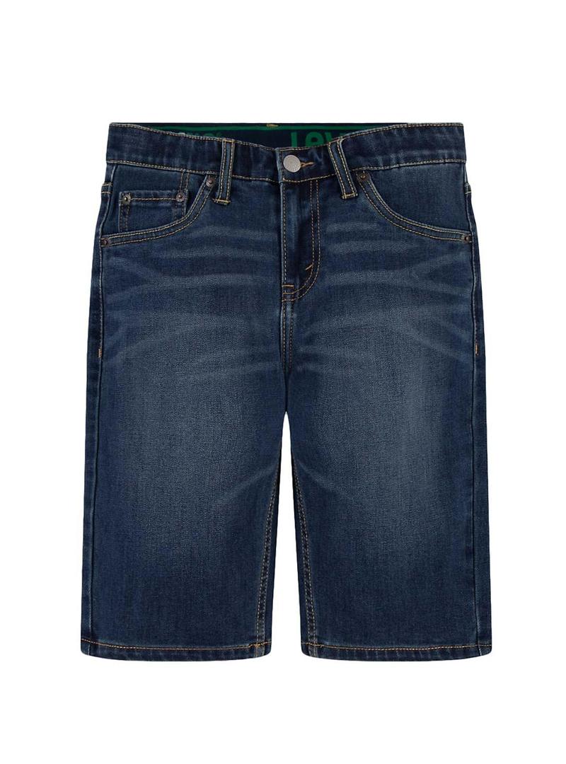 Bermudas Levis. Modelo Eco. Cor marinho. 5 bolsos. Fechamento por botão e zíper. Patch da marca nas costas. Slim fit.