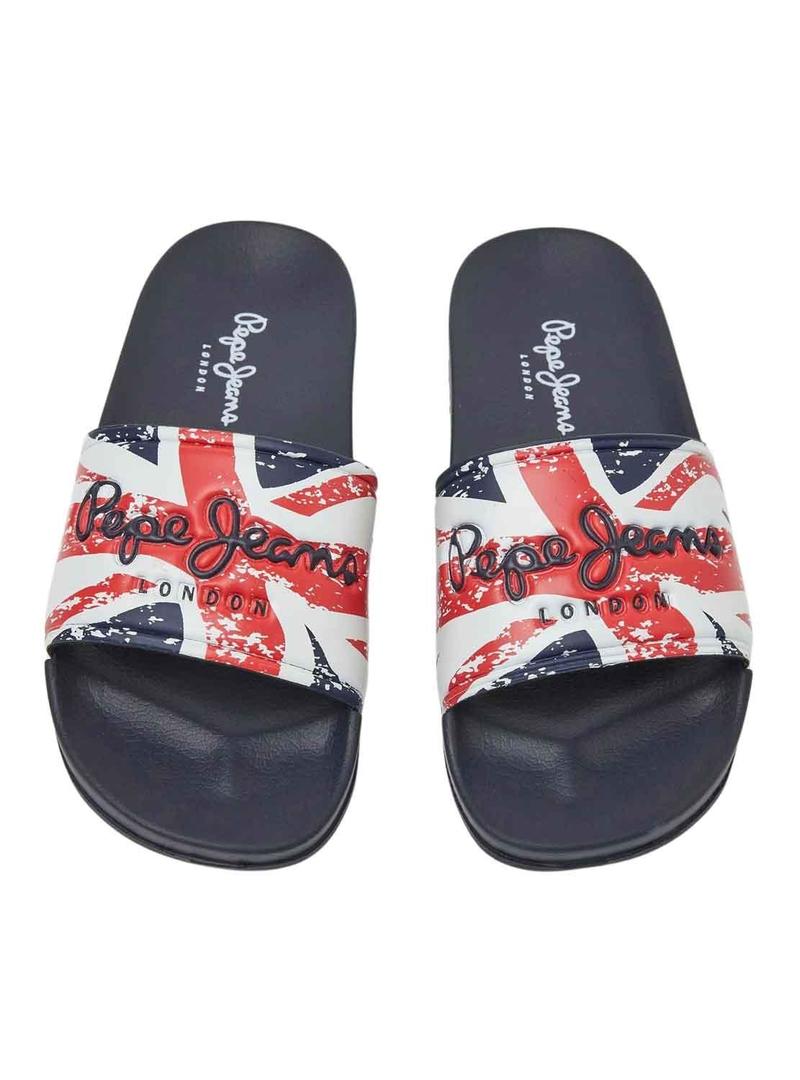 Flip flops Pepe Jeans. Modelo Jack. Cor marinho. Tira larga estampada no peito do pé. Solado antiderrapante.
