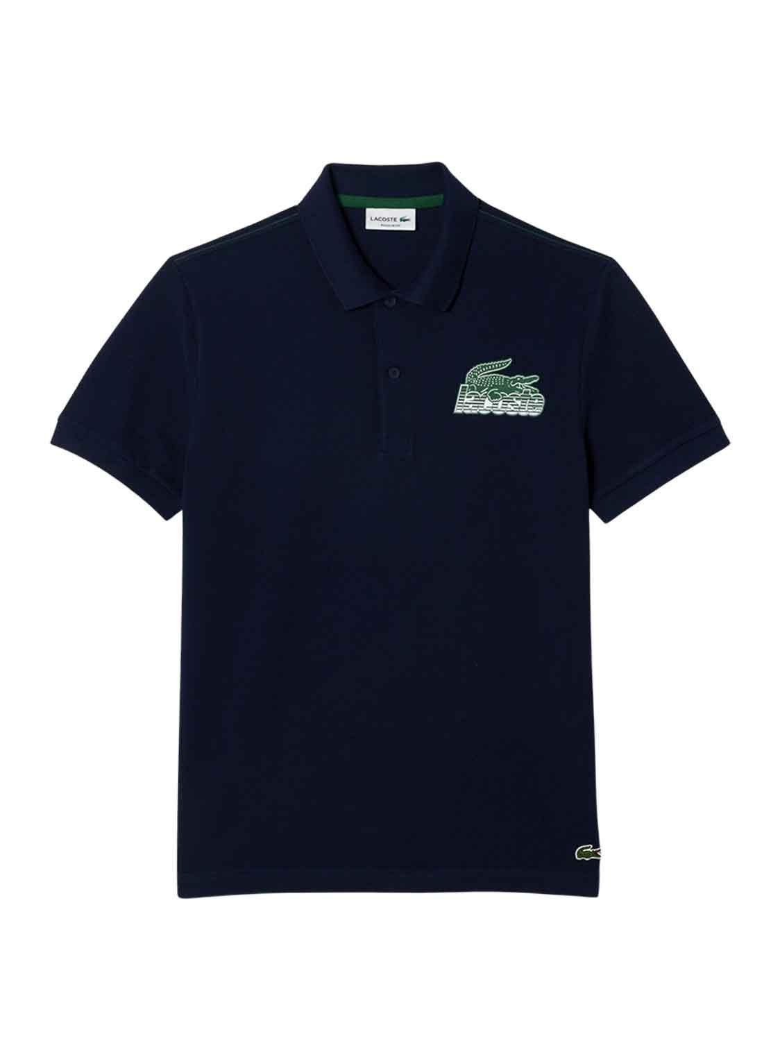 Polo Lacoste. Futuro modelo. Cor marinho. Gola polo Tapeta com 2 botões. Manga curto. Logo estampado no peito. Regular fit.