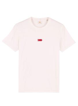 T-Shirt Klout. Modelo Tornado. Cor branco vintage. Pescoço redondo. Manga curto. Regular fit Detalhes em vermelho. Logo no peito. Ilustração no verso. Selo GOTS de algodão orgânico.