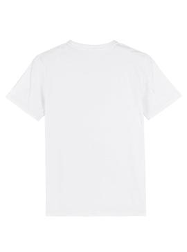 T-Shirt Klout. Modelo Tsunami. Cor branco. Pescoço redondo. Manga curto. Regular fit Ilustração estampada em parte frontal. Confeccionado em algodão orgânico. Desenhado na Galiza, Espanha.