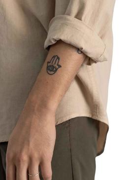 Camisa Klout. Cor bege. pescoço Mao. Fecho de botão. Logo bordado no peito. Detalhes em branco. Regular fit