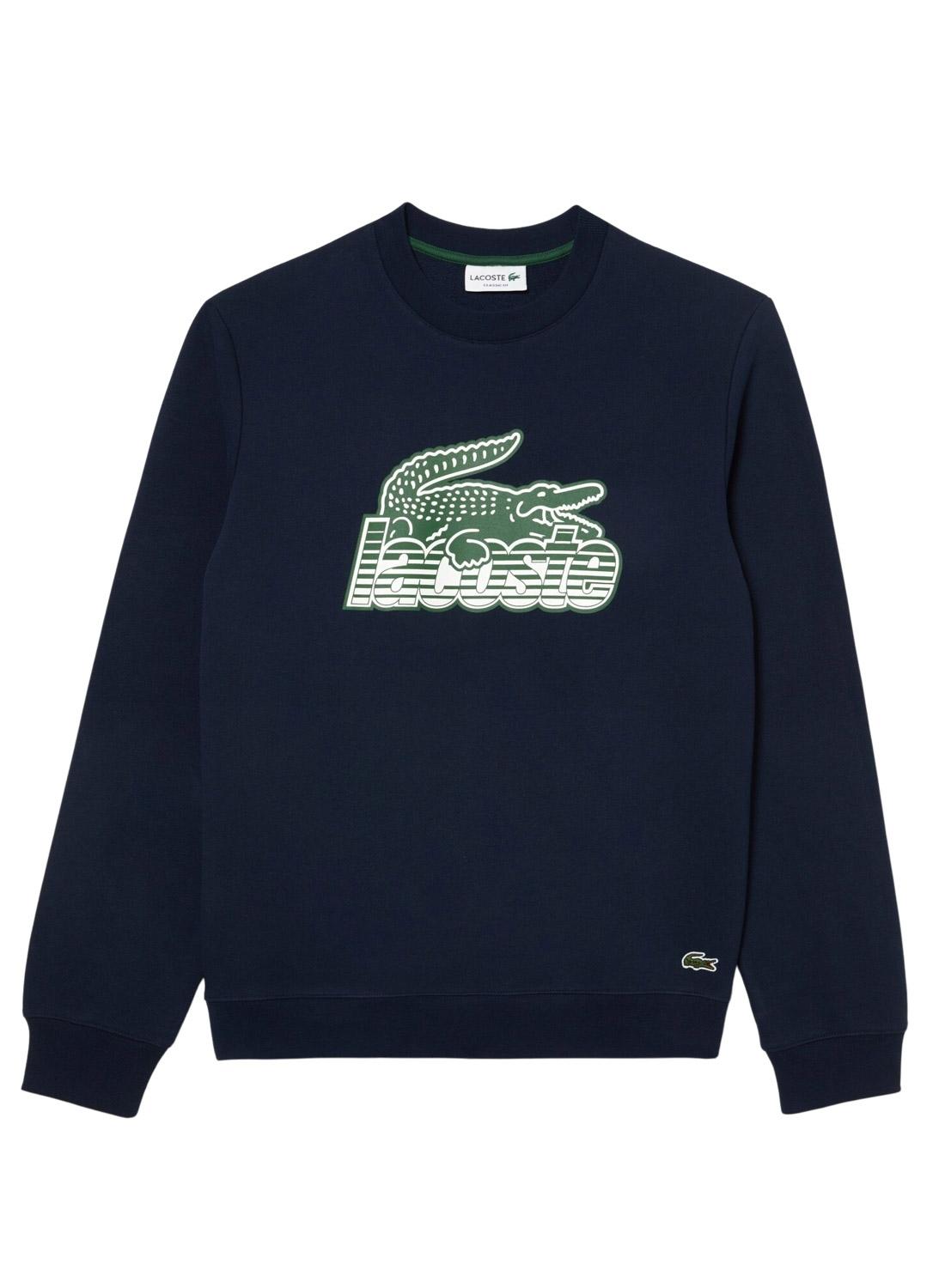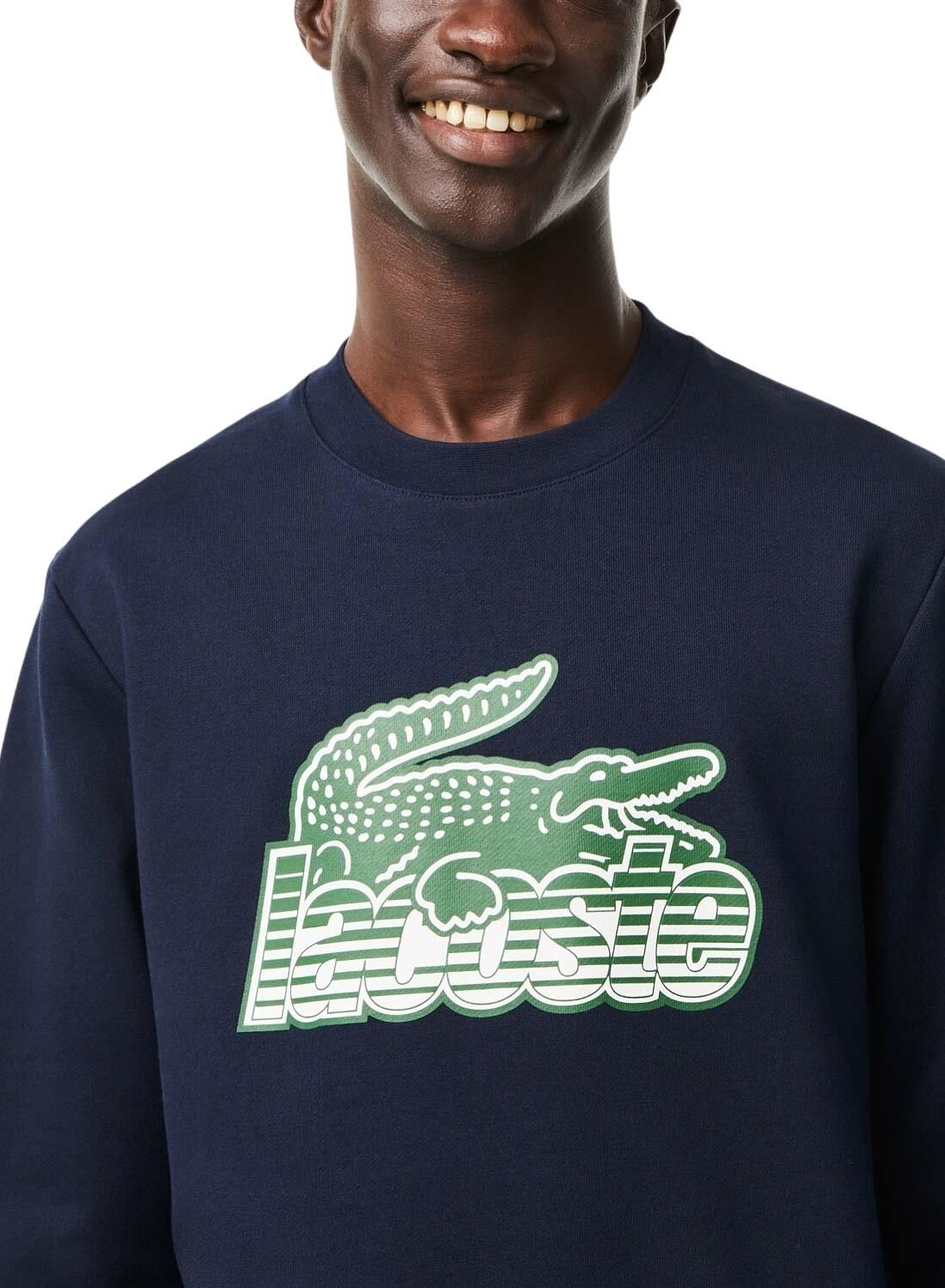 Sweat Lacoste. Modelo degradado. Cor marinho. Pescoço redondo. Crocodile bordado na parte inferior. Estampa gráfica no peito. Manga longo. Ajuste Classic.