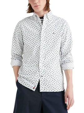 Camisa Tommy Jeans. Modelo Flower. Cor branco. Printed com mini flores em verde. Fecho de botão. Regular fit Logo bordado no peito. Gola da camisa.