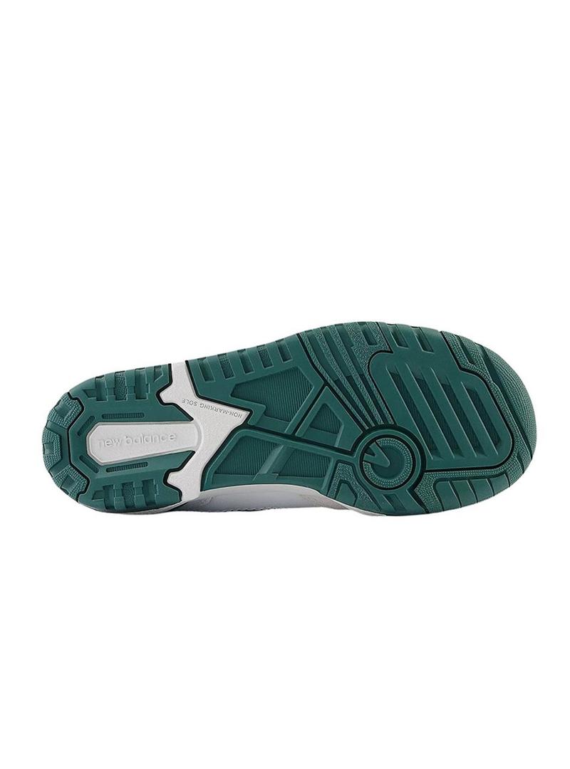 Sapatilhas New Balance. Para menino e menina. Cor branco com detalhes em verde. Modelo PSB550TA. Parte de cima em couro e material sintético. Borracha Sola para para maior durabilidade. Fecho de cadarço ajustável.
