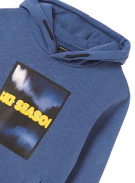 Moletom Mayoral com capuz azul com estampa de letras para menino.