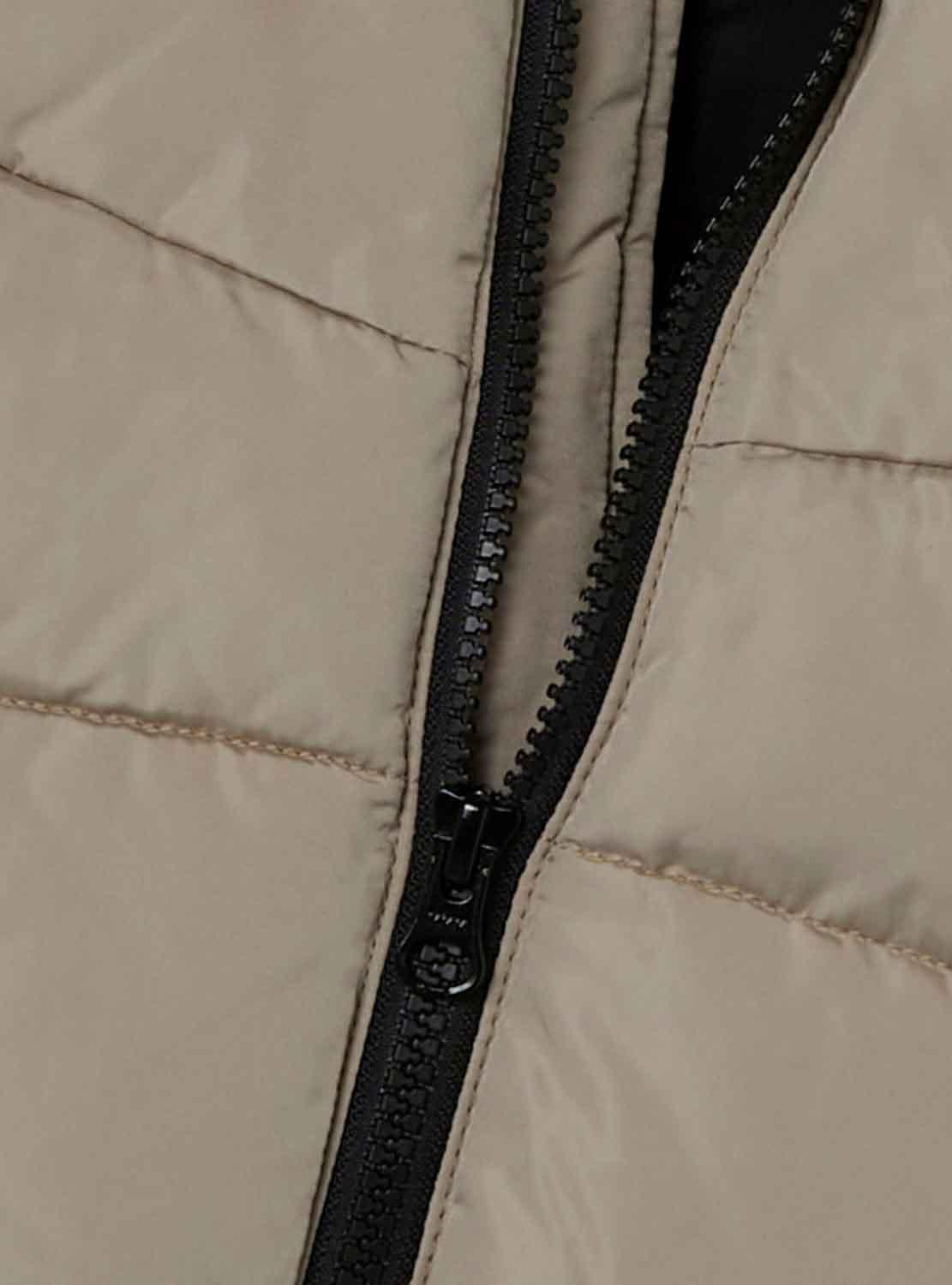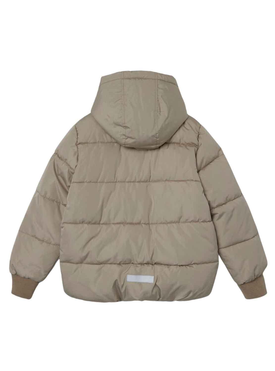 Casaca Name It. Modelo musical Puffer. Cor bege. Fecho com zíper. Com capuz removível. Punhos elásticos. Tecido acolchoado. Zíper lateral Bolsos.
