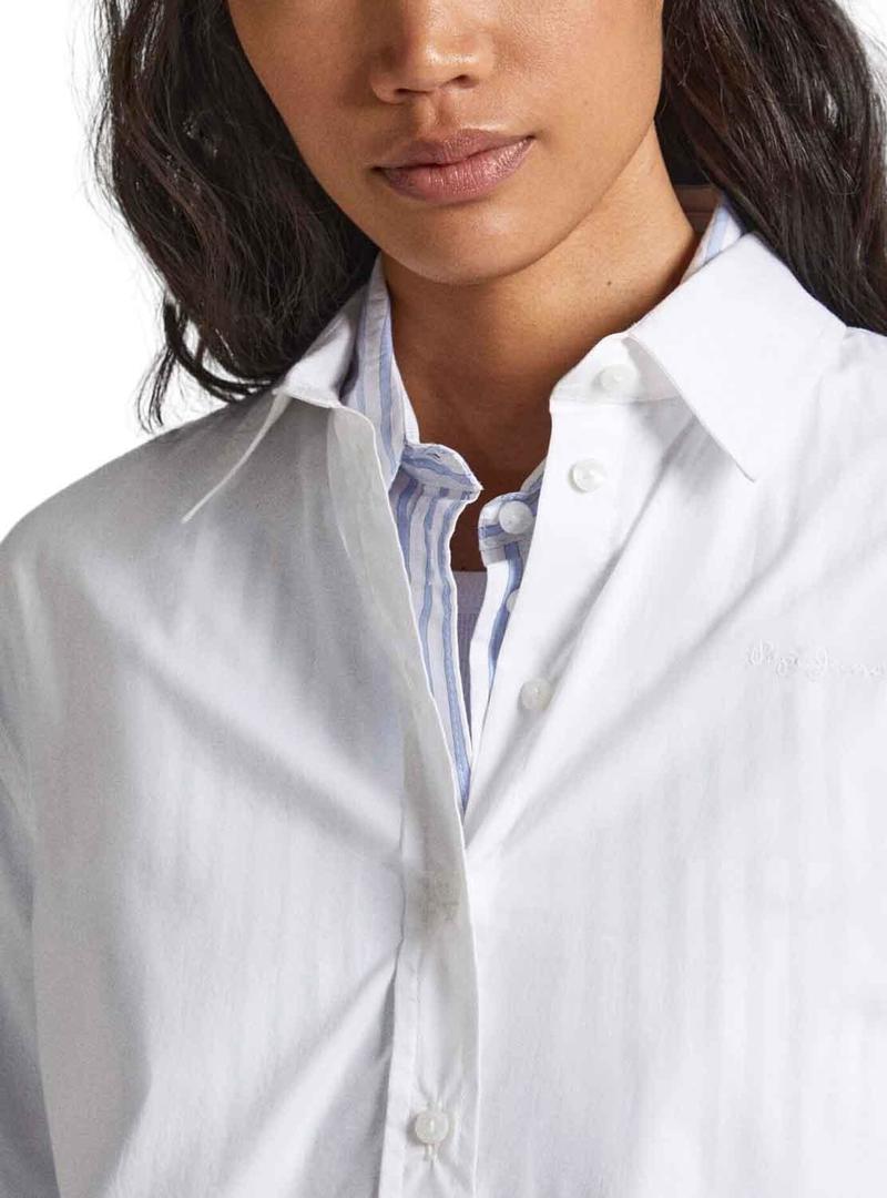 Camisa Pepe Jeans. Modelo Liza. Cor branco. Fecho de botão. Manga longo. Bainha arredondada. Tecido popeline. Ajuste Relaxed.