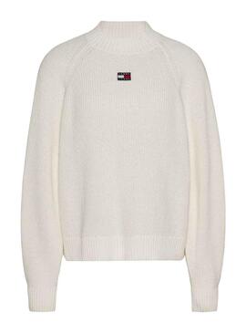 Camisola Tommy Jeans Badge SimuladoNeck Branco Mulher