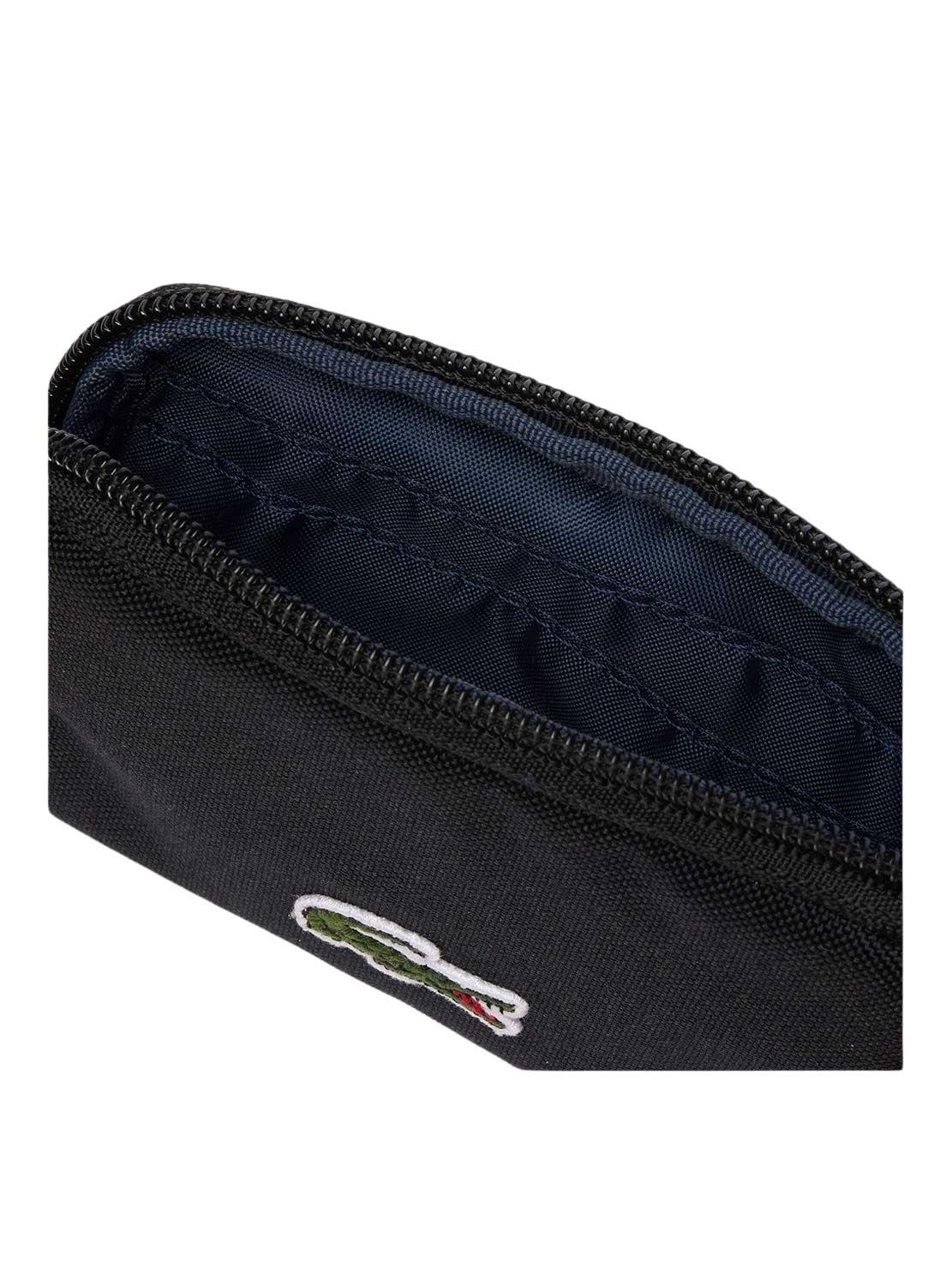 Bolsa Lacoste. Fecho com zíper. Logo costurado. Exterior em poliéster. Dimensões 12,1 x 8,3 x 2 cm. Compartimento para cartão para.