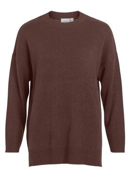 Camisola Vila. Modelo Vireggie. Cor marrom. Gola redonda elástica. Ombros caídos. Extremidades elásticas. Tecido de malha macia.