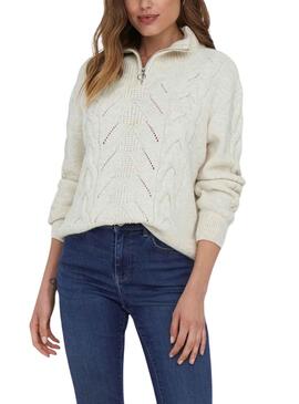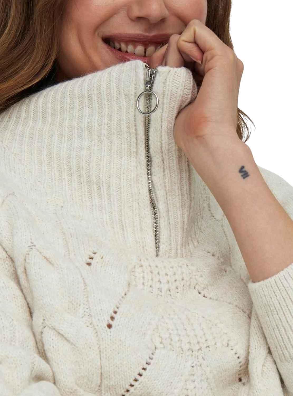 Camisola Only. Modelo Leise Zip. Gola alta com zíper. Manga longo. Tecido de malha elástica. Extremidades elásticas. Ombros caídos. A modelo está usando tamanho S.