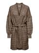 Cardigã Only. Modelo Celina. Cor marrom. Gola V. Com cinto. Ombros caídos. Tecido de malha elástica. Extremidades elásticas.