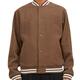 Jaqueta Jack and Jones. Modelo Zac. Estilo bomber. Cor marrom. Fecho com botões de pressão. Barra, gola e punhos com elástico e detalhes em branco.