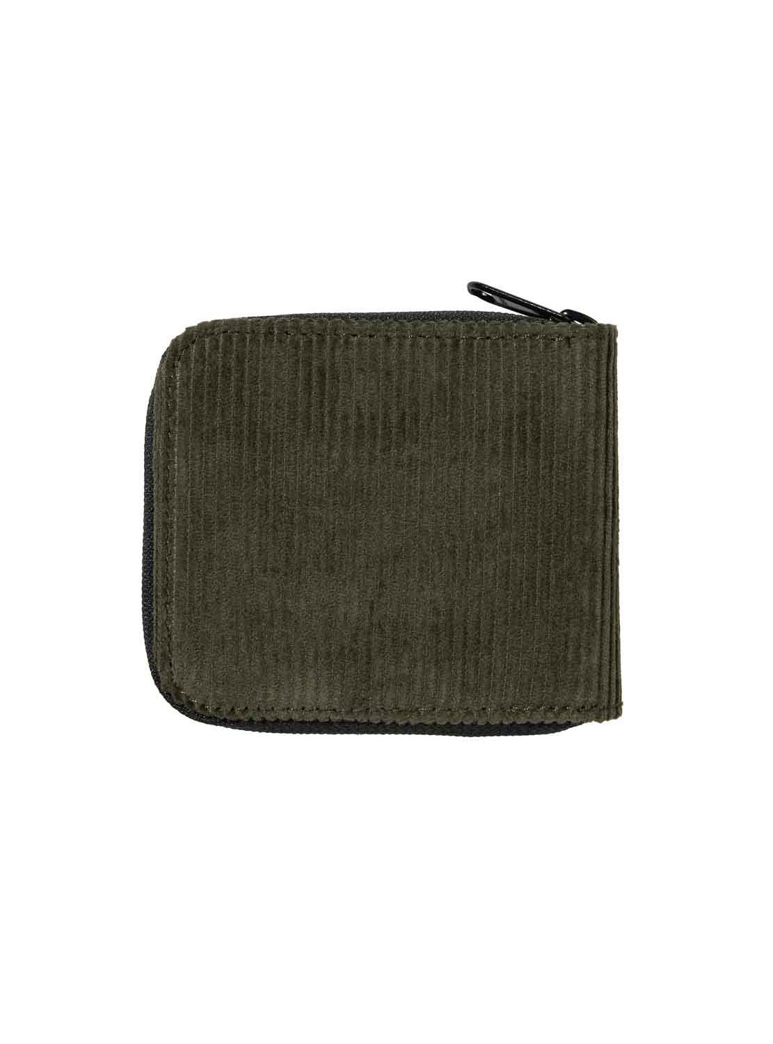 Carteira Carhartt. Cor verde. Medidas: 9x22,5cm Tecido veludo cotelê. Forrado. Fecho de correr. Carteira Bolso. Verticais ocultas do Bolso em ambos os lados. Carteira Bolso com aba. Três bolsos para cartões. Etiqueta de marca quadrada.