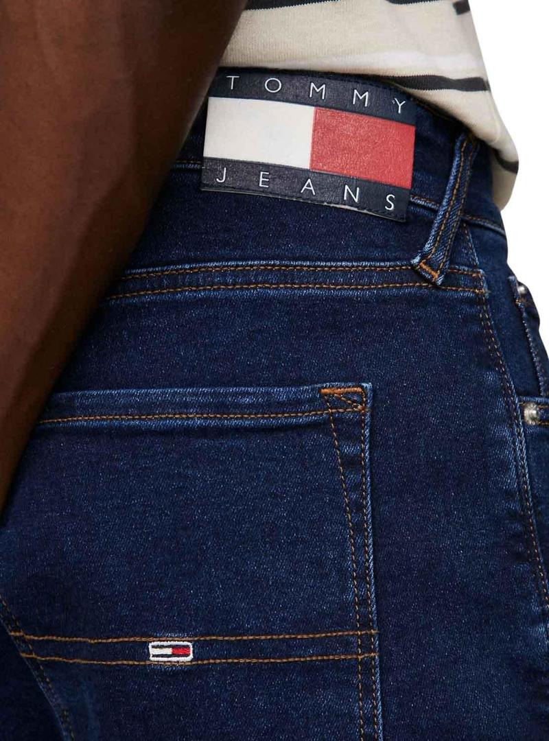 Jeans Calças Tommy Jeans. Modelo Scanton. Cor jeans escuro. Cinco bolsos. Tecido jeans elástico. Feito com algodão. Fechamento por botão e zíper. Presilhas para cinto para. Ajuste slim. Detalhes distintivos.