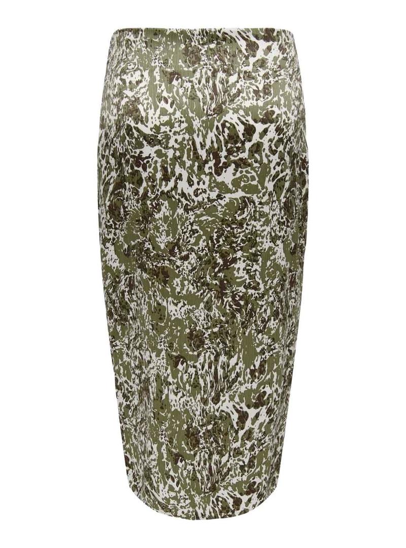 Saia Only. Printed estampado. Cor verde. Detalhe franzido na cintura. Abertura lateral. Formato MIDI.