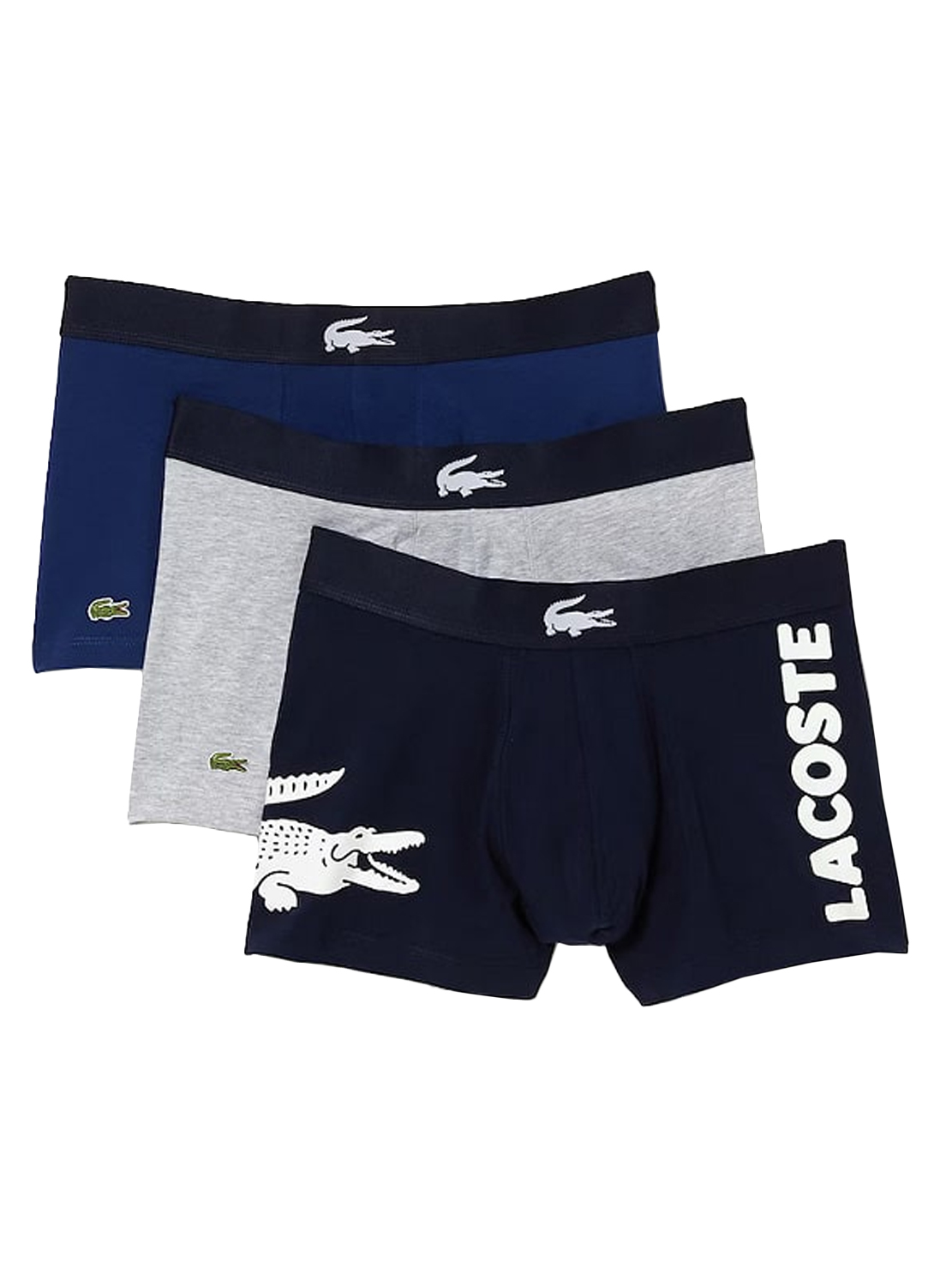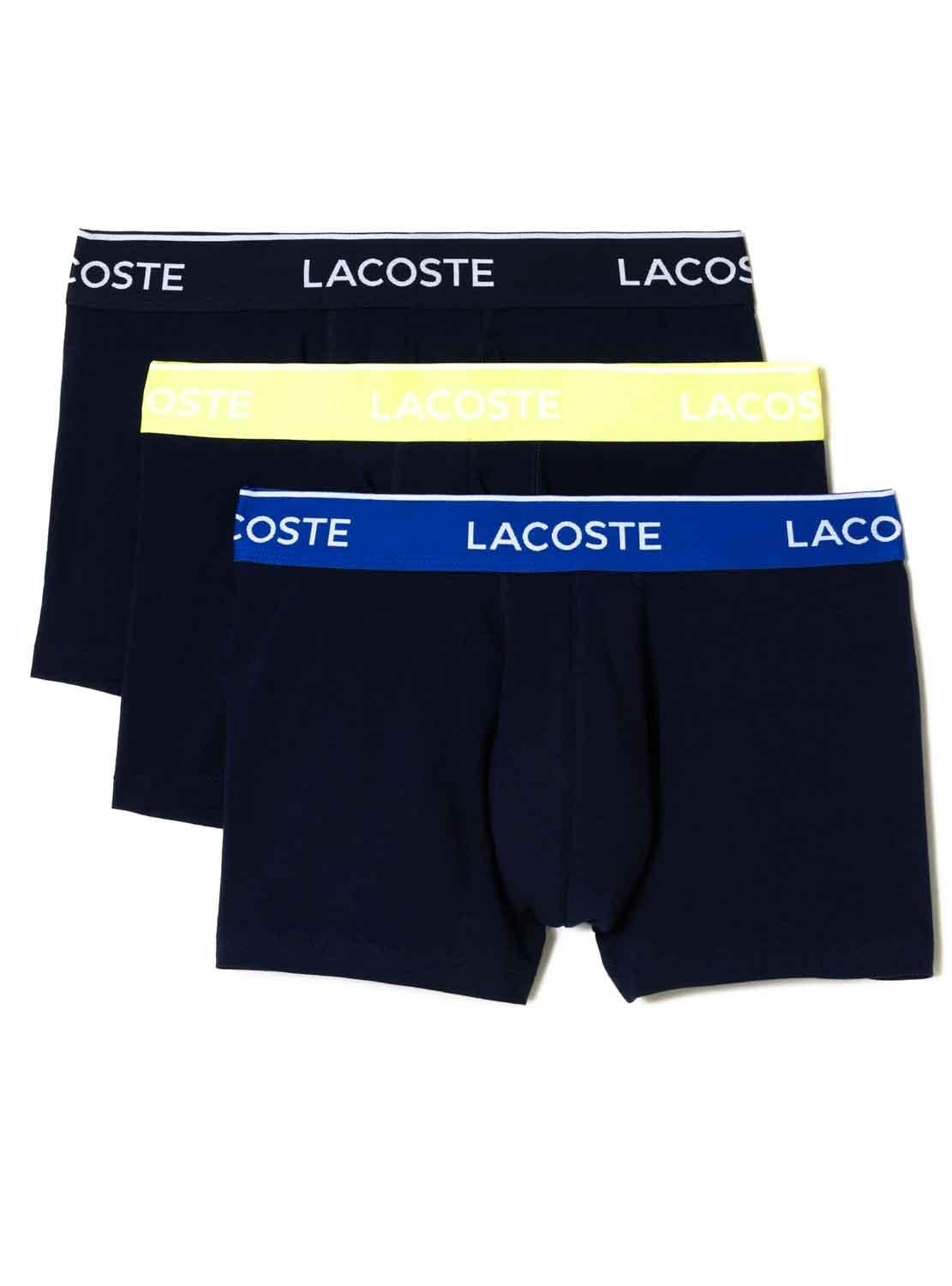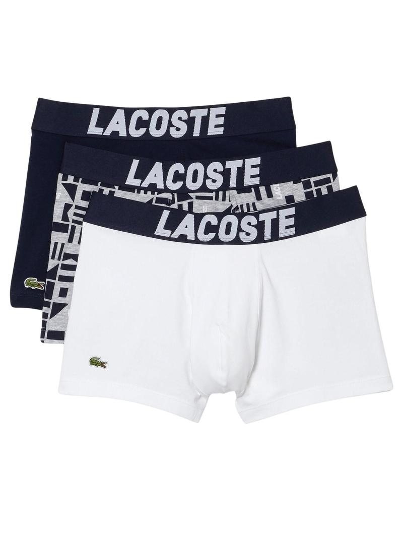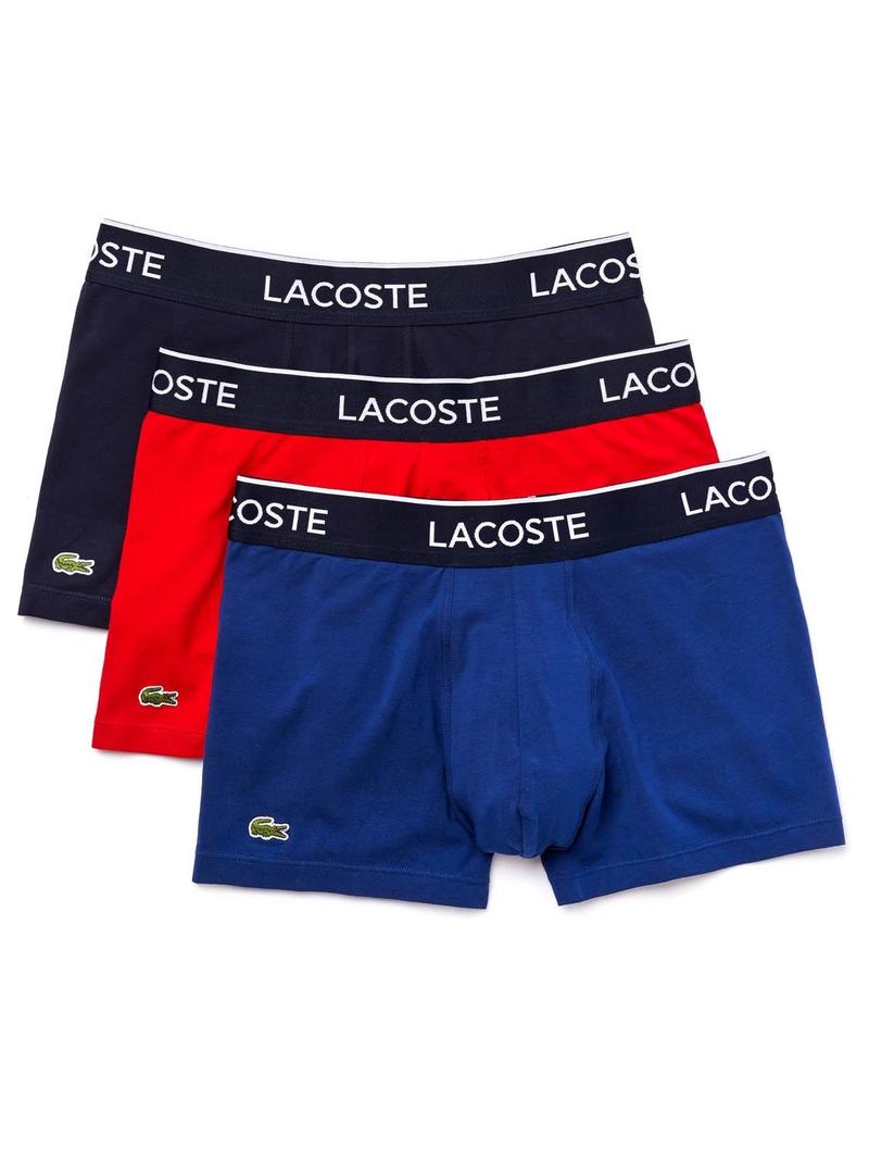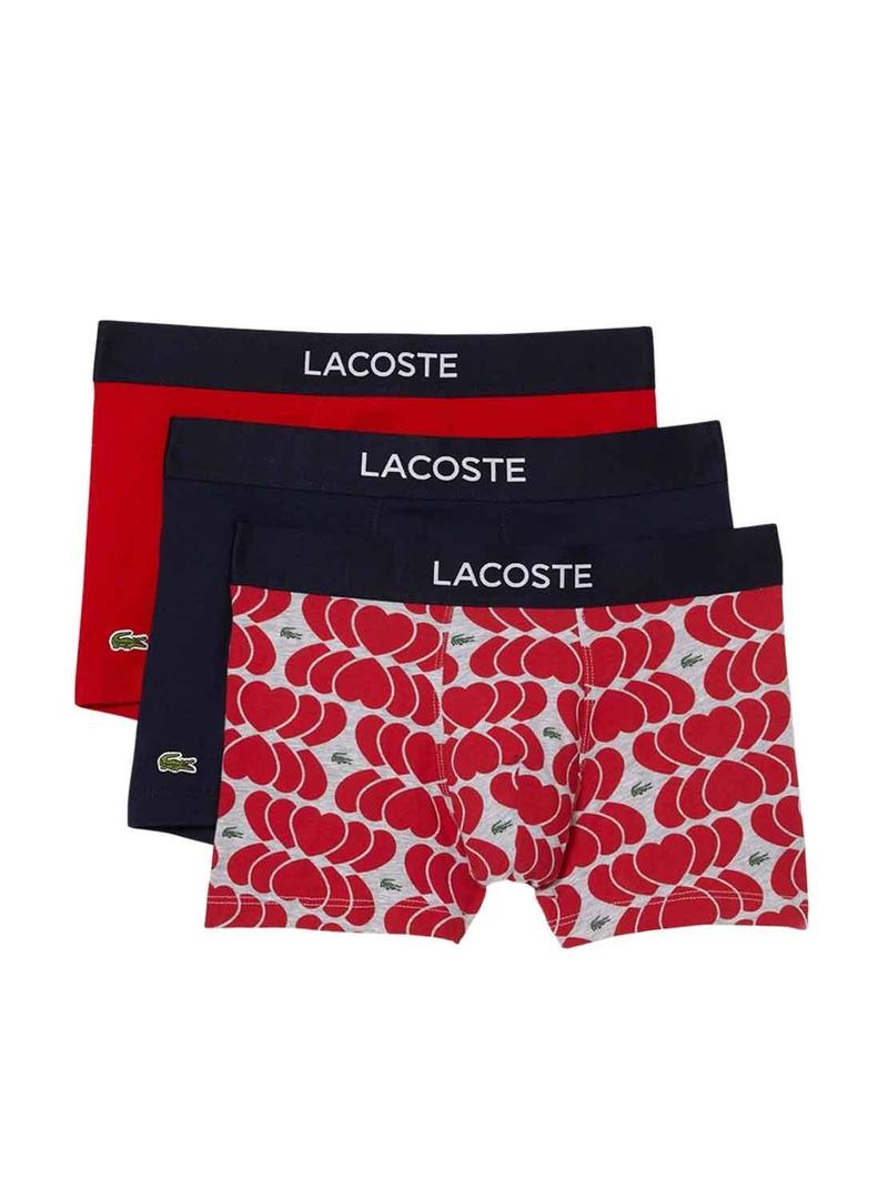 CuecasLacoste. Pack três boxeadores. Cor vermelho, branco e preto. Cintura elástica com logotipo.
