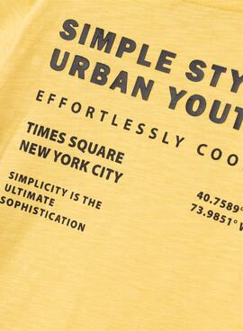 T-Shirt Name It. Cor amarelo. Manga curto. Pescoço redondo. Printed na parte traseira. Detalhe de etiqueta na barra. Formato normal.