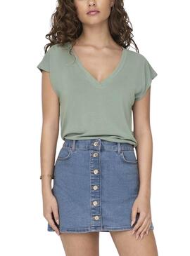 Camiseta Only Free Life S/S V-Neck Verde Mulher
