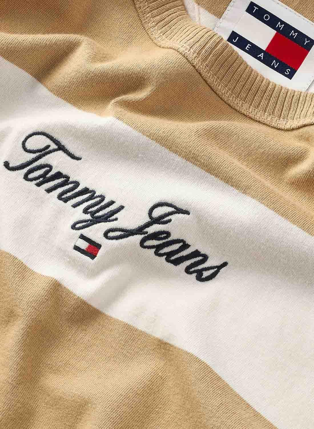 Camiseta Tommy Jeans Bold Stripe em Tostado para Homem