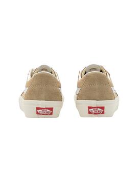 Tênis Vans. Modelo SK8 Low. Cor bege. Fecho de cadarço. Faixa de cor branca no lateral. Detalhes microperfurados. Sola de borracha.