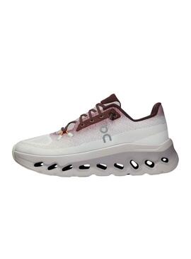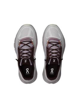 Sapatilhas On Running. Modelo Cloudtilt. Cor branco e roxo. Fecho com atacadores elásticos. Atado rápido. Entressola de 7mm. Entressola suave e leve. Design de meia interior. Elementos cloud para maximizar o amortecimento. Superespuma Helion.