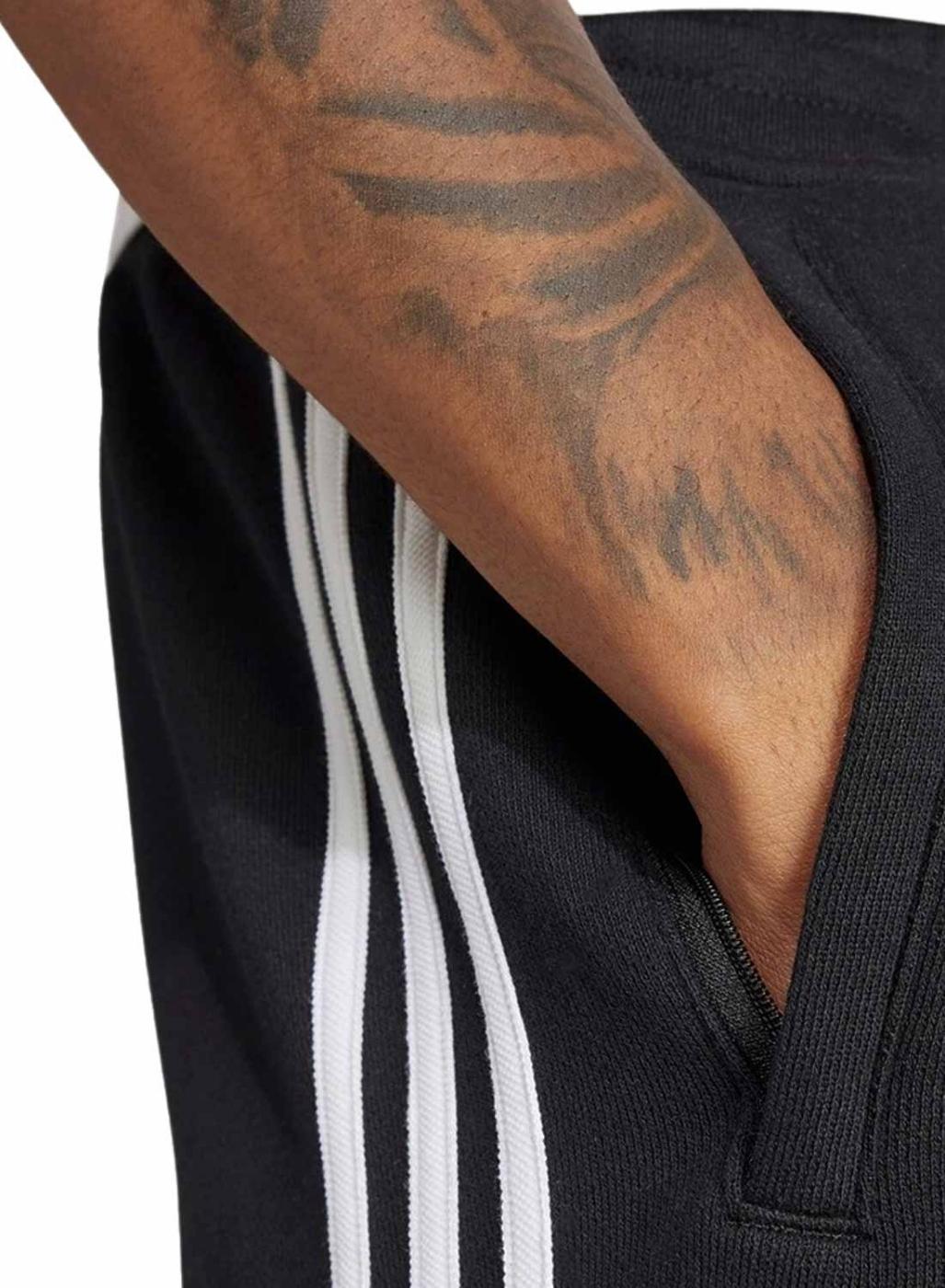 Calções Adidas. Modelo Adicolor 3 Listras. Cor preta. Cintura elástica com cordão. Produto em colaboração com Better Cotton. Bolsos frontais com zíper. Faixas da marca em contraste na lateral. Trevo da marca bordado na perna.