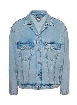 Jaqueta trucker Tommy Jeans Aiden Oversize azul denim para homem.