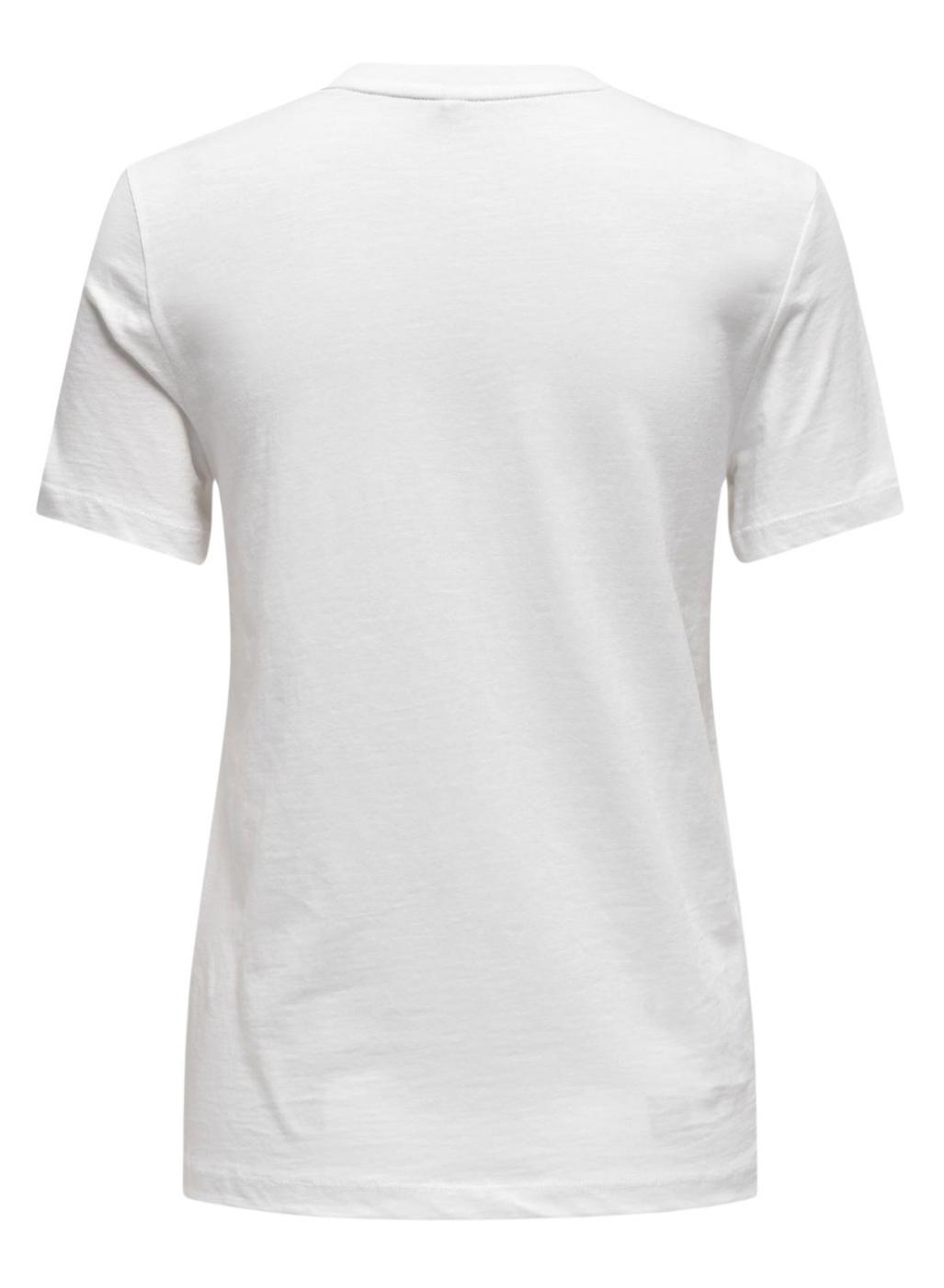 Camiseta Only. Modelo Misa. Cor branca. Gola redonda. Bolso no peito. Estampa de cacto. Manga curta. Regular fit.