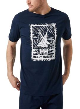 Camiseta Helly Hansen. Modelo Shoreline. Cor azul marinho. Gola redonda. Estampa gráfica no peito. Manga curta. Regular fit.