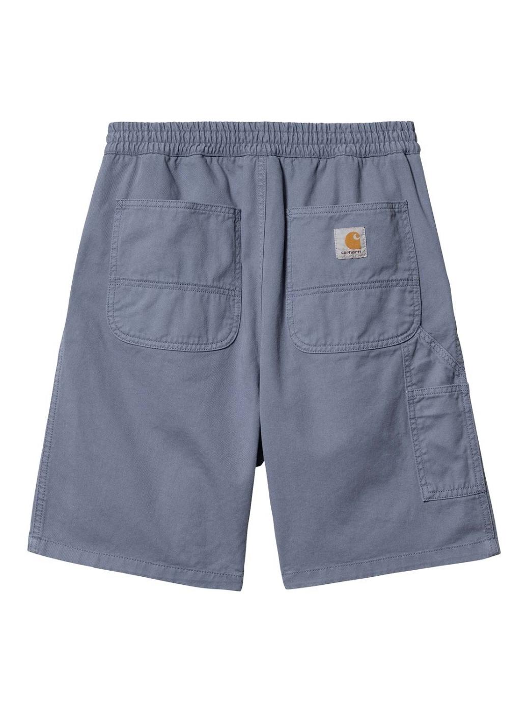 Bermudas Carhartt. Modelo Flint. Azul claro. Cintura elástica. Bolsos laterais. Bolsos traseiros com distintivo da marca. Ajuste folgado.