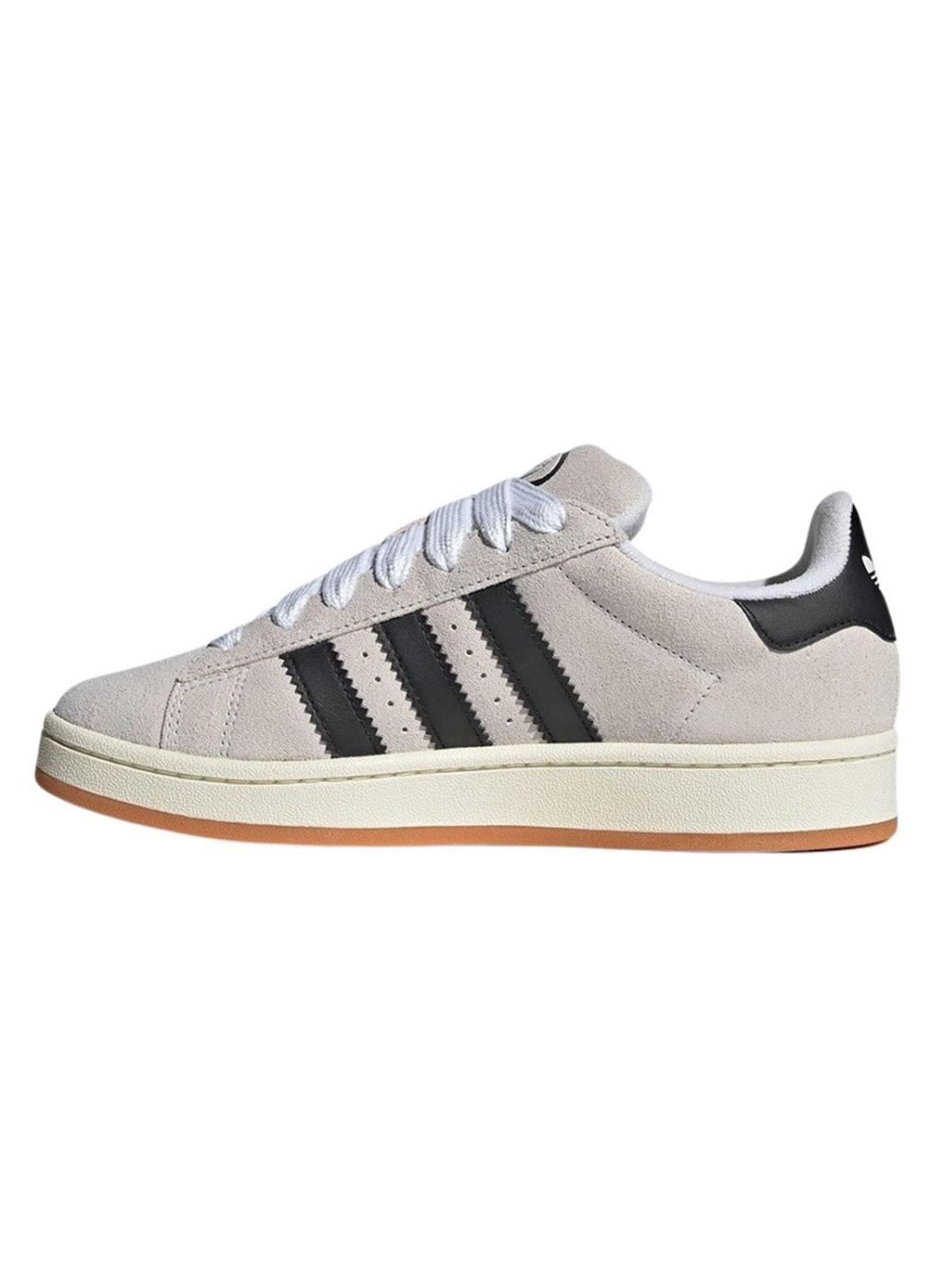 Sapatos Adidas. Modelo Campus 00S. Cor bege. Detalhes em contraste em preto. Fecho de cadarço. Parte superior de camurça. Forro interior têxtil. Sola de borracha em cor caramelo. Detalhe das 3 listras na lateral. Inspirado na era skate dos anos 2000.