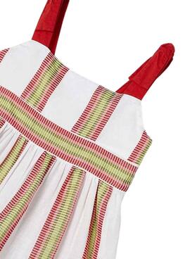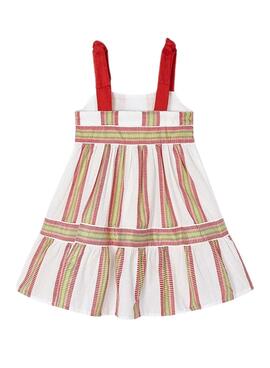 Vestido Mayoral. Estampado de riscas. Alças em contraste com laços.
