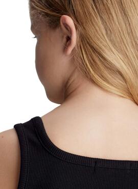 Vestido Calvin Klein. Modelo Rib Badge. Cor preta. Sem mangas. Tecido de malha de algodão elástico. Textura fina. Design ajustado. Decote quadrado.