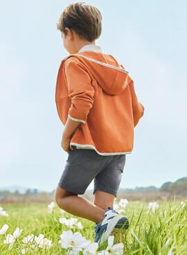 Bermuda Mayoral. Cor cinza. Tecido de ganga macio. Cintura elástica com cordão. 5 bolsos. Etiqueta da marca na parte de trás.