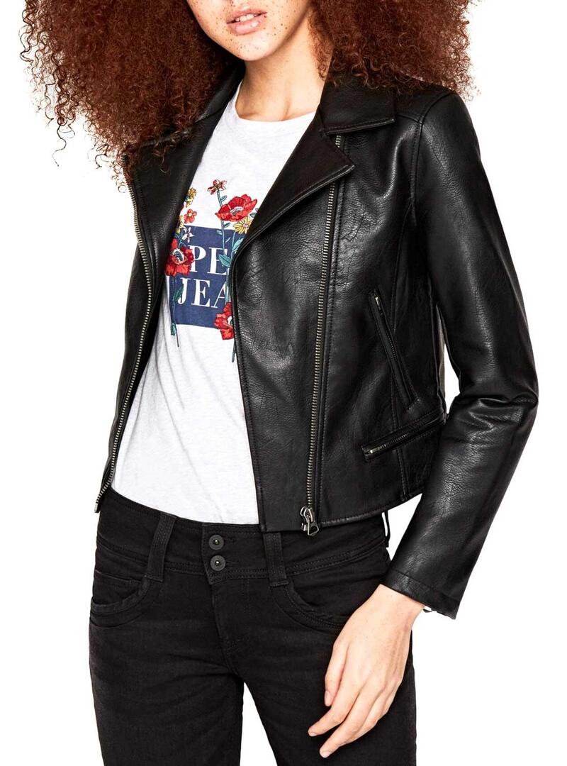 Jaqueta Pepe Jeans. Modelo Letitia. Cor preta Fecho frente con zíper metal. Multipocket con zíper. Interior forrado para tonificar. Ajuste regular. Ajustadores no baixo. Jaqueta perfeito ecocoiro. Punhos con zípers.
