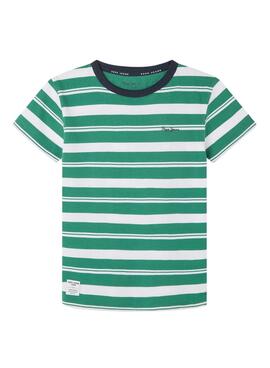 Camiseta Pepe Jeans. Modelo Reeve. Cor verde. Manga curta. Gola redonda em contraste. Estampa de listras. Logo da Pepe Jeans no peito.