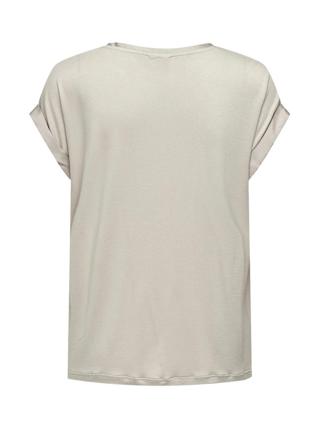 Top Only. Modelo Lieke. Cor cinza. Manga curta com bainha. Gola redonda. Corte regular.