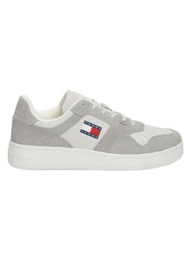 Sapatilhas Tommy Jeans Basket cinza e branco para homem.