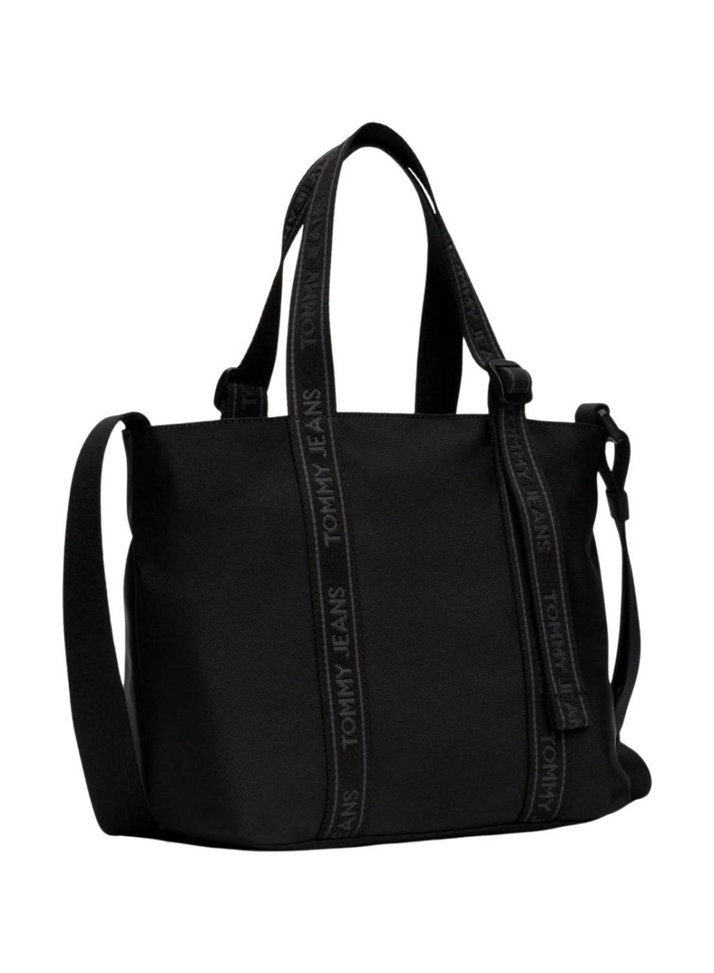 Bolsa tote Tommy Jeans. Modelo Essential Daily Mini Tote. Cor preto. Tecido texturizado. 2 alças superiores. Alça ajustável. Compartimento principal com fecho de botão. Bolso interior. Detalhes distintivos da Tommy Jeans. Patch da marca na parte frontal. Dimensões: 24 x 15 x 21 cm. Capacidade de 4,5 L.