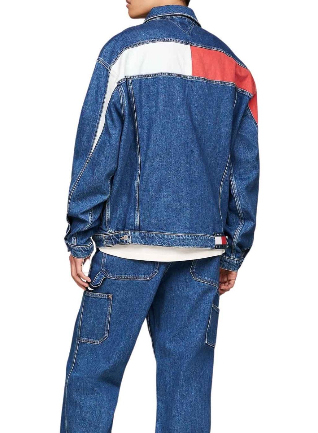 Jaqueta trucker Tommy Jeans Aiden Oversize azul denim para homem.