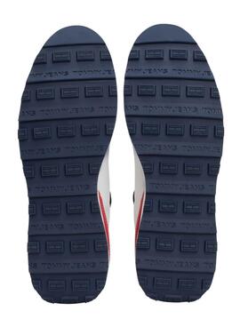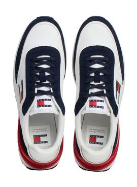 Sapatilhas Tommy Jeans. Modelo Technical Runner. Cor branca. Painéis em azul marinho. Detalhes em vermelho. Fecho com cordões. Logotipo lateral. Sola de borracha. Entressola de EVA.