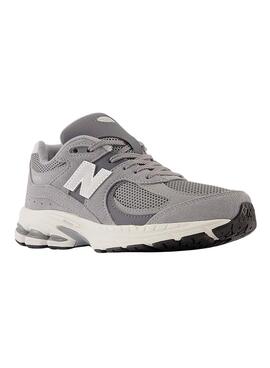 Sapatilhas New Balance. Modelo 2002. Cor branca. Detalhes em prata. Fecho com cadarço. Painéis de malha. Sola de borracha.