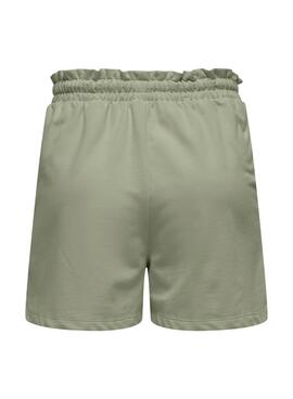 Curto Apenas. Modelo Lellie. Cor verde. Cintura elástica ajustável com cordão. Corte regular.