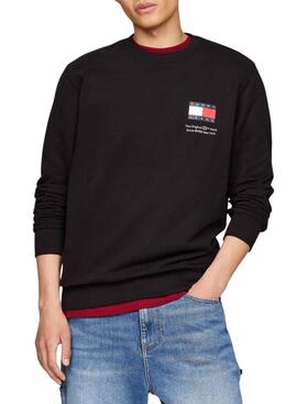 Moletom Tommy Jeans Flag Crew preto para homem.