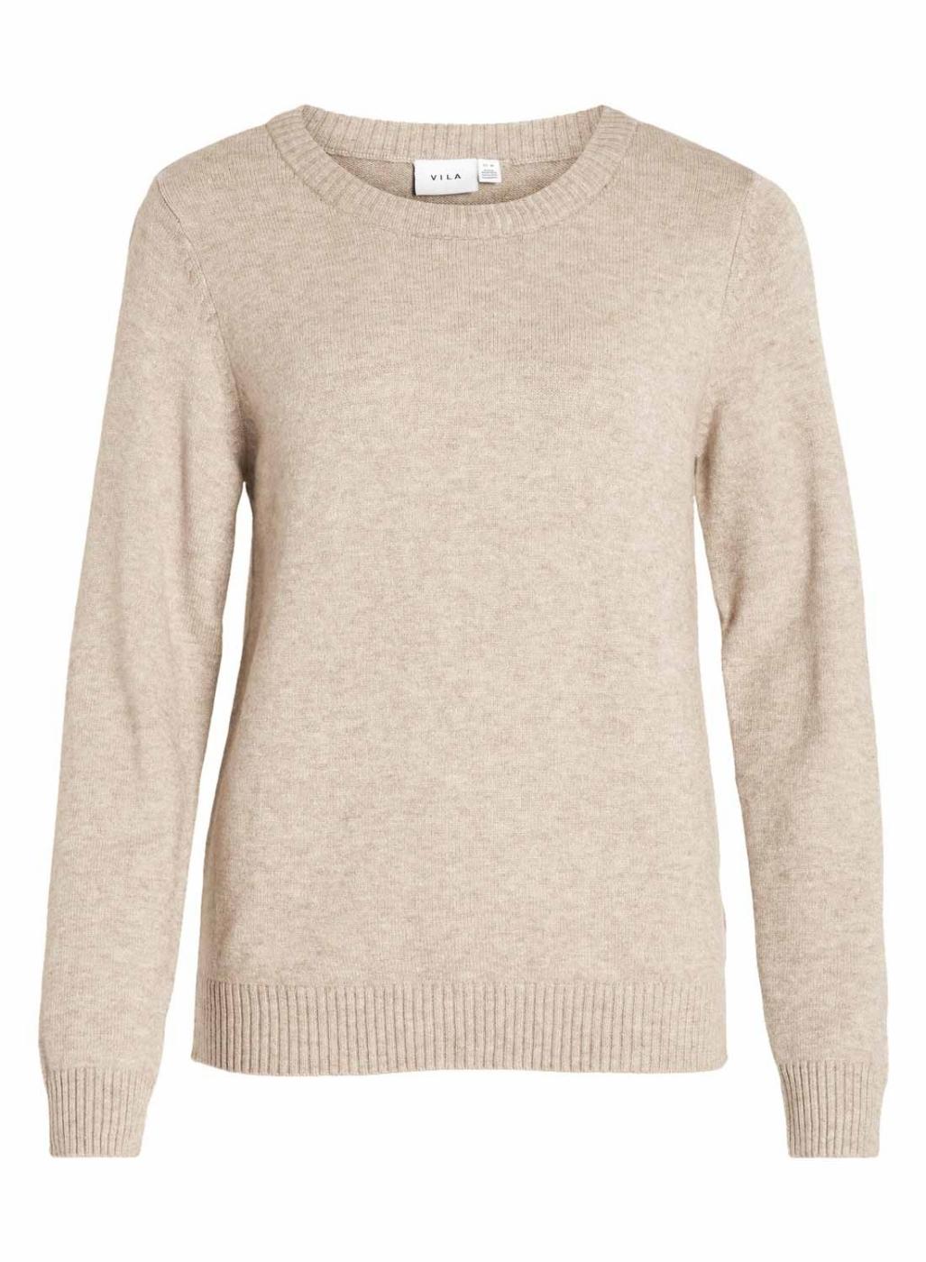 Camisola Vila. Modelo Viril. Estilo básico. Cor bege. Gola redonda. Extremidades caneladas. Ajuste regular.