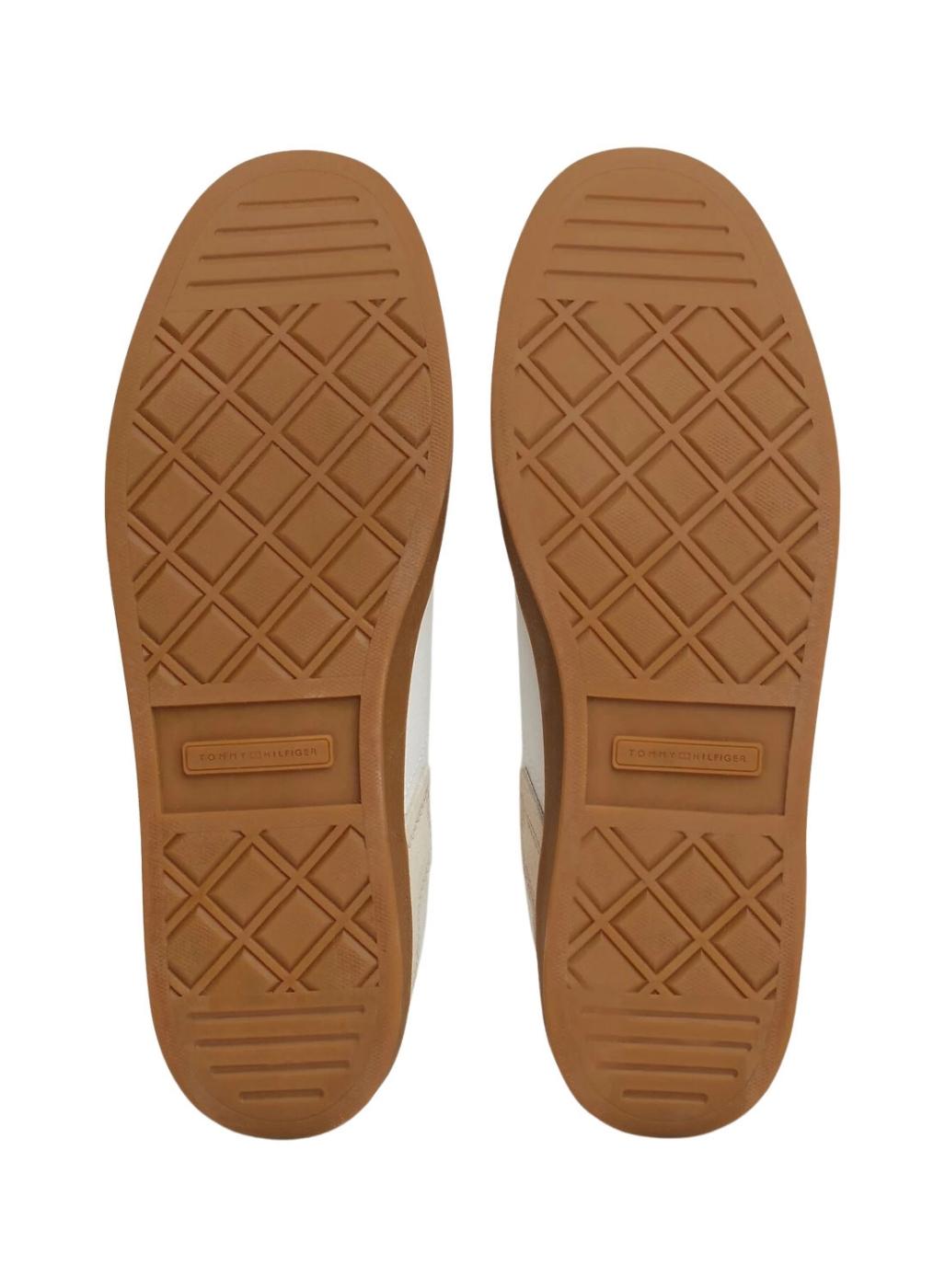Sapatos Tommy Hilfiger. Modelo Heritage Court. Cor branca. Painéis em bege. Calcanhar em cor de vinho. Sola de borracha em cor natural. Logo lateral bordado em tom. Fecho com cadarço.