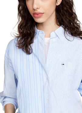 Camisa Tommy Jeans Oversize listrada azul para mulher
