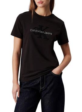 Camiseta Calvin Klein Jeans Monologo Glossy preto para mulher.